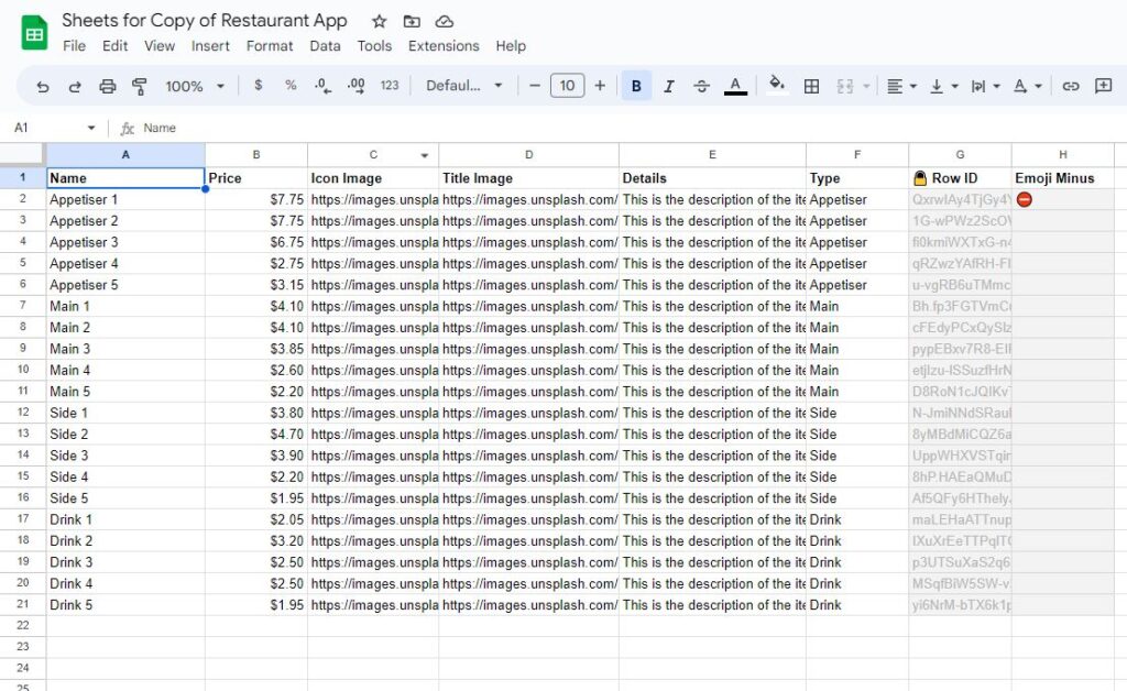 La aplicación se integra con Hojas de cálculo de Google para proporcionar una base de datos segura y confiable para almacenar información del cliente, como el nombre, el teléfono y la dirección de correo electrónico. Los administradores pueden agregar, editar y eliminar fácilmente registros de la base de datos desde la interfaz de usuario, lo que les permite controlar su menú de manera eficiente.